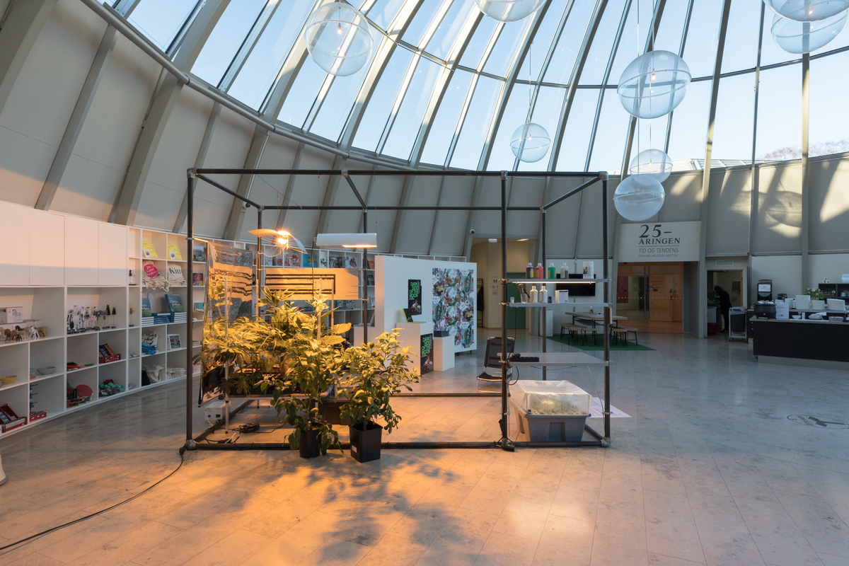 | Materiale og teknikk: | Installasjon med stålramme, vanningssystem, lysstoffrør og planter |