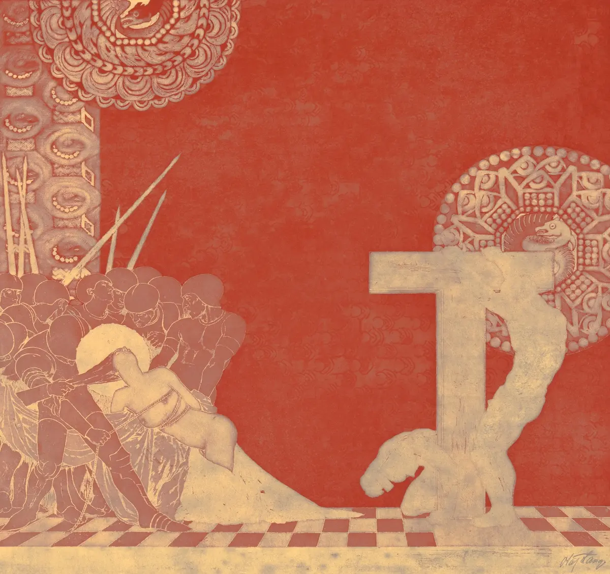 | Materiale og teknikk: | Fargeradering, prøvetrykk (rød) |