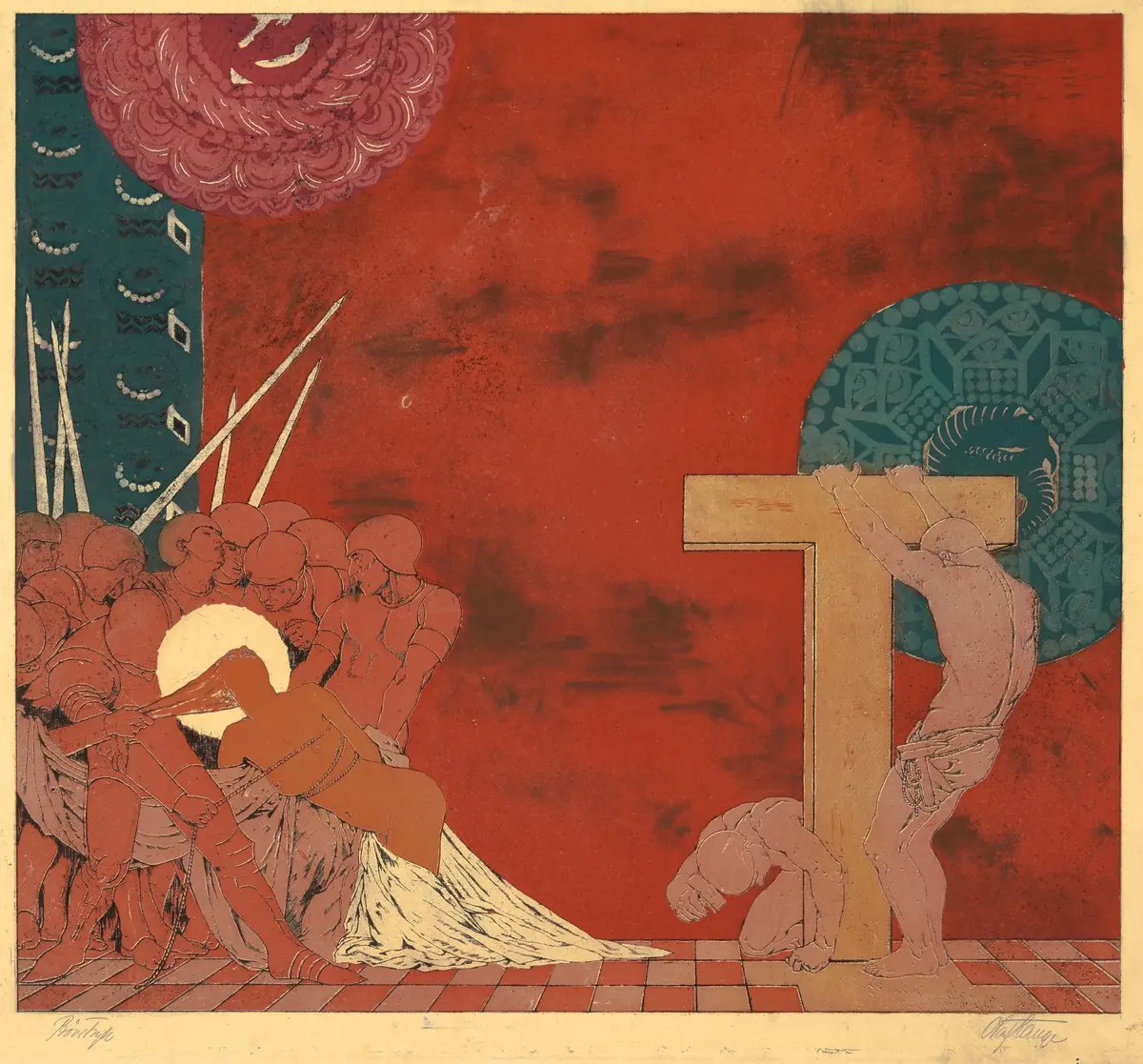 | Materiale og teknikk: | Fargeradering, prøvetrykk (flerfarget) |