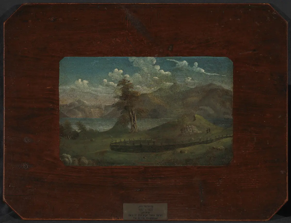 Lars HertervigLandskap (malt på sybordslokk) |