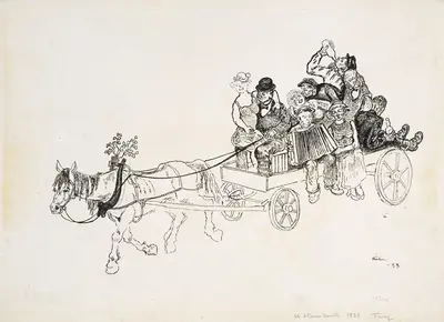 | Materiale og teknikk: | Tusjtegning på papir |