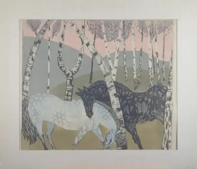 Ingolf Vilhelm Bull TveteraasHester i bjørkeskog (original) |